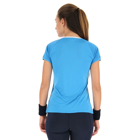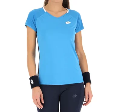 Lotto Squadra II is the Blue Bay women’s tennis t-shirt made of light, breathable and stretch fabric that ensures maximum comfort on the court.